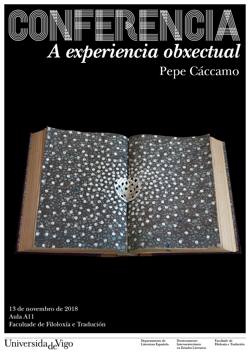 O vindeiro martes 13 de novembro, ás 16.00 horas, terá lugar a conferencia “A experiencia obxectual”, a cargo de Pepe Cáccamo, na aula A11 da FFT (UVigo).