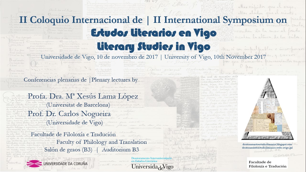 O vindeiro venres, 10 de novembro de 2017, terá lugar o II Coloquio Internacional de Estudos Literarios en Vigo | II International Symposium on Literary Studies in Vigo.